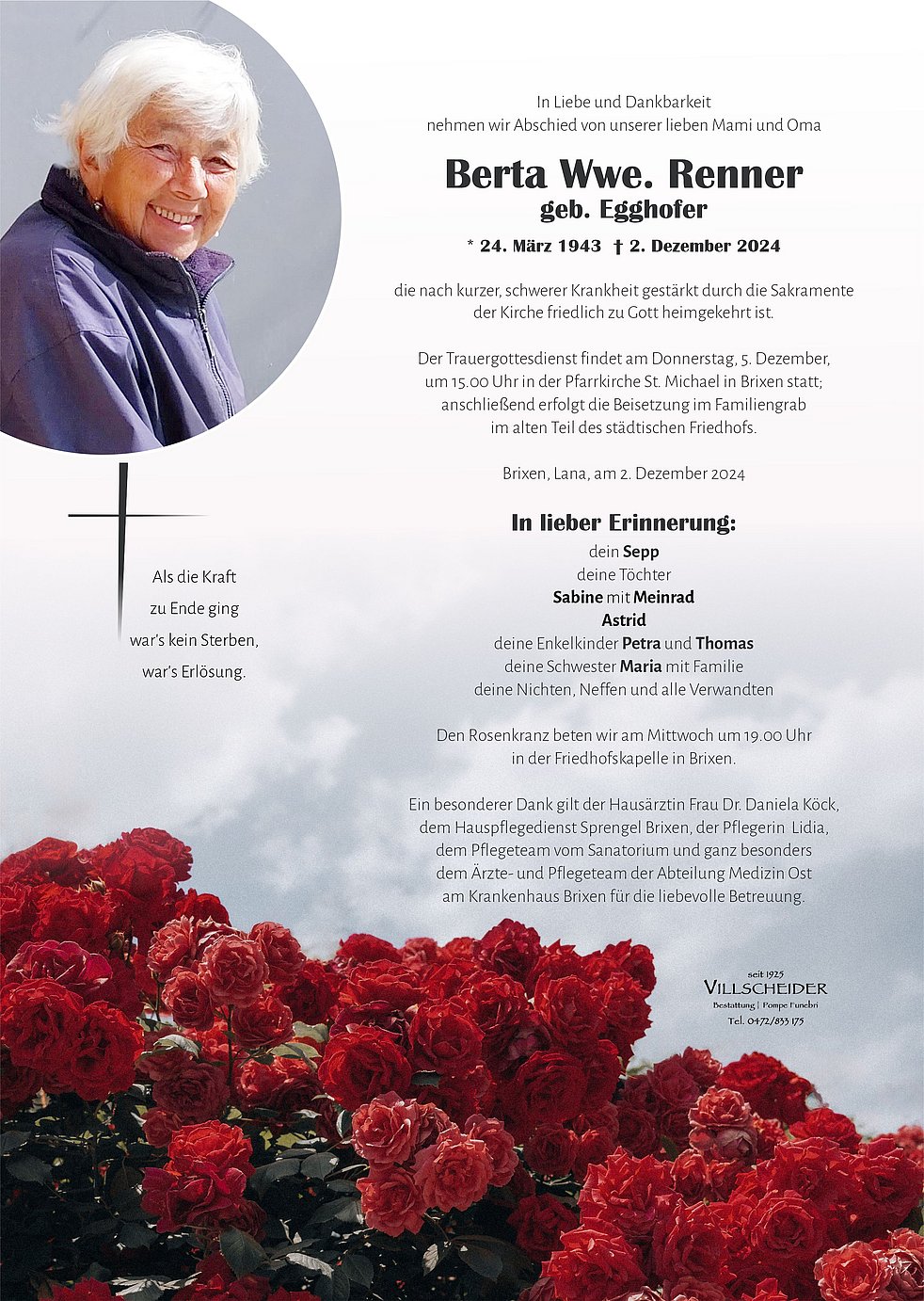 Begräbnisgottesdienst: 05.12. - 15:00 Uhr Brixen | Bressanone