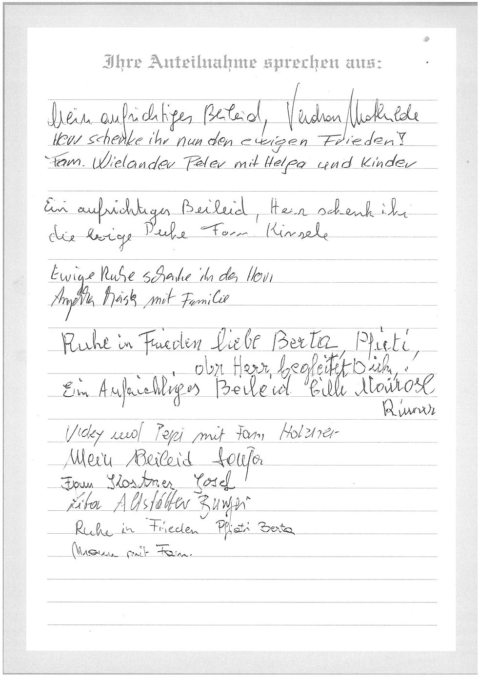 Allen, die am Seelenrosenkranz und an der Beerdigung teilnehmen, ein recht herzliches Vergelt’s Gott.