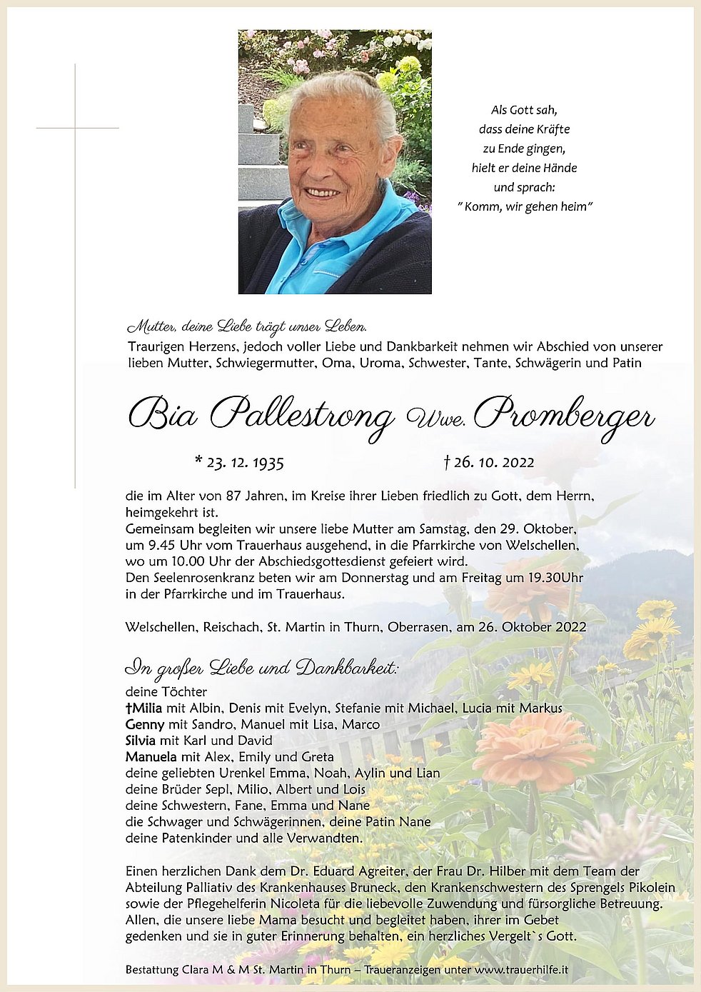 Gemeinsam begleiten wir unsere liebe Mutter am Samstag, den 29. Oktober, um 9.45 Uhr vom Trauerhaus ausgehend, in die Pfarrkirche von Welschellen, wo um 10.00 Uhr der Abschiedsgottesdienst gefeiert wird.