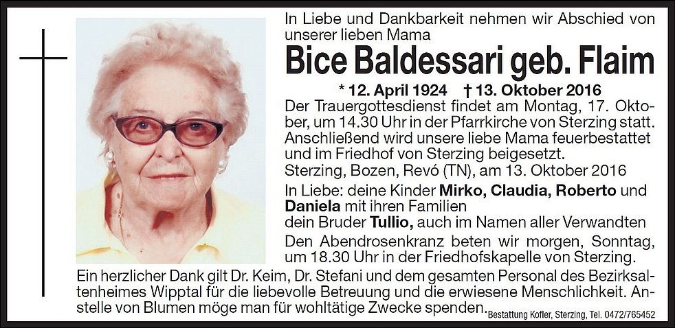 Bice Baldessari geb. Flaim