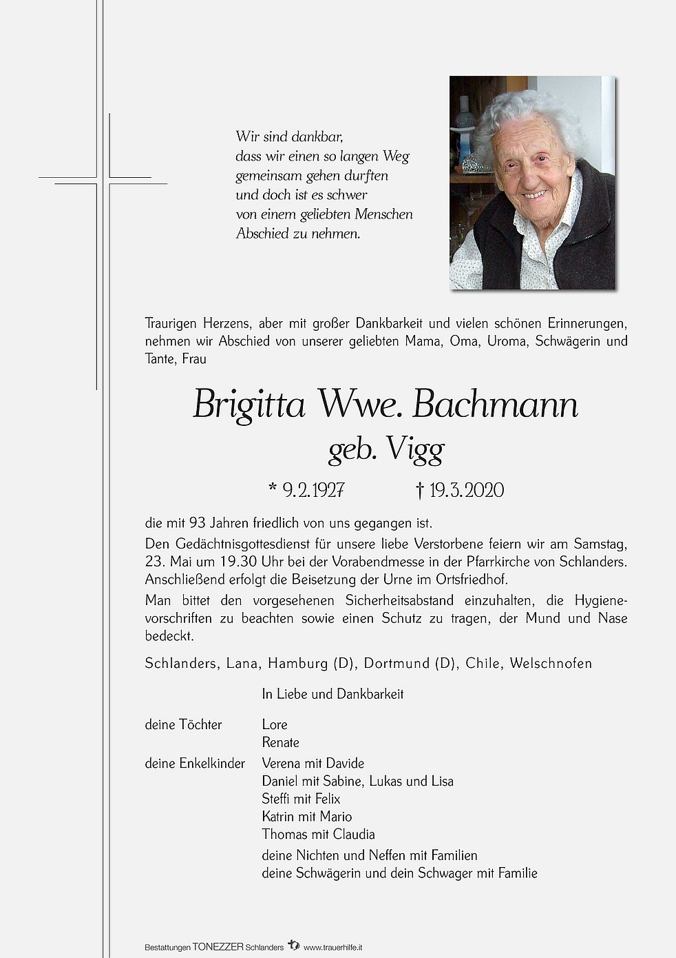 Den Gedächtnisgottesdienst für unsere liebe Verstorbene feiern wir am Samstag, 23. Mai, um 19.30 Uhr bei der Vorabendmesse in der Pfarrkirche von Schlanders.