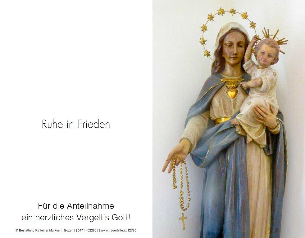 Den Seelenrosenkranz beten wir am Sonntag und am Montag, jeweils um 19.30 Uhr in der Pfarrkirche von Terlan.