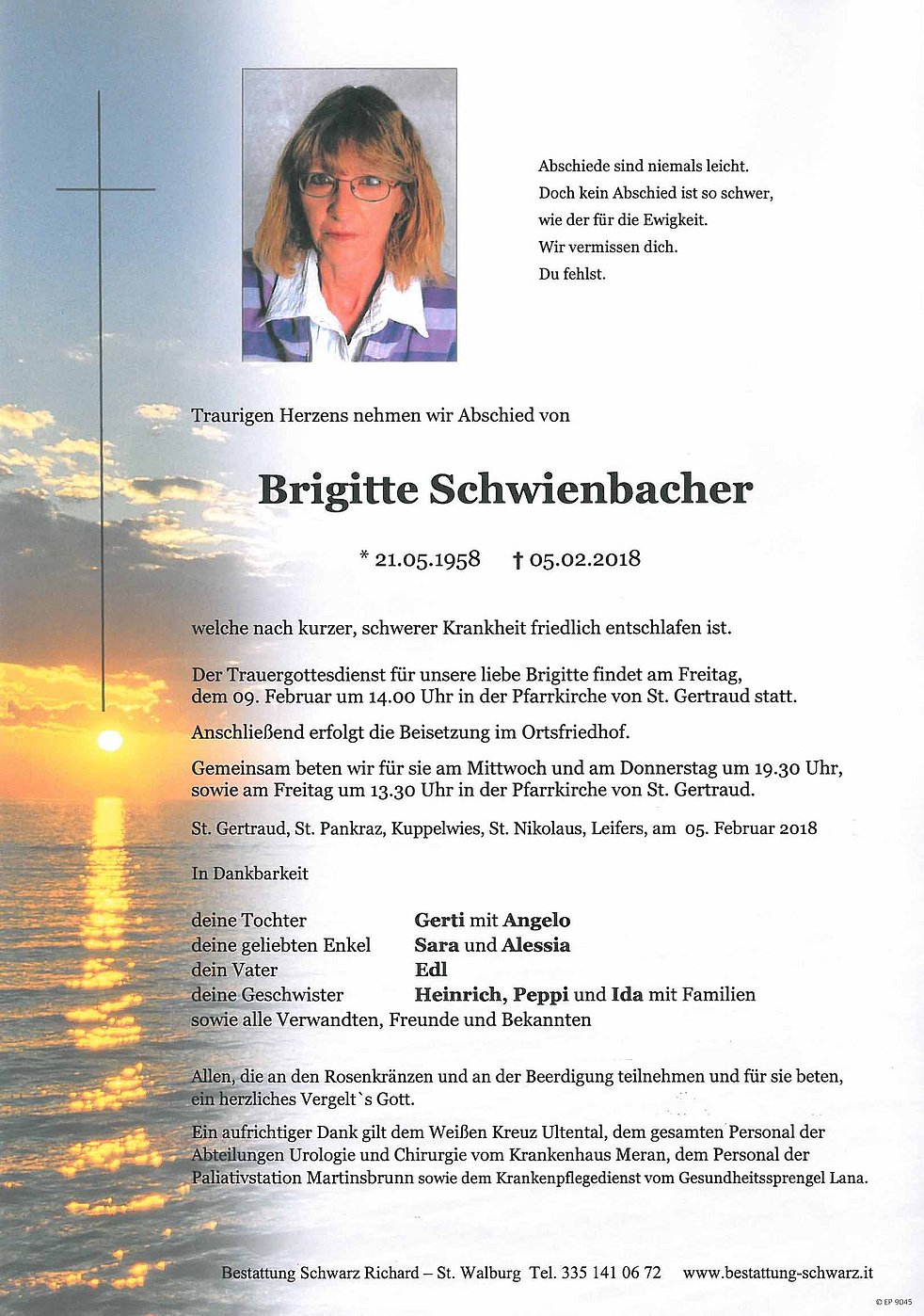 Trauergottesdienst: Freitag, 9. Februar 2018, 14 Uhr, Pfarrkirche St. Gertraud