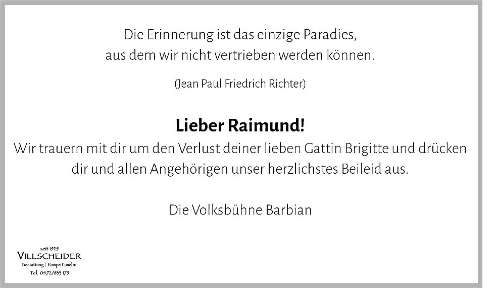 erst kürzlich hast du mir erzählt, wie schön der Seniorenfasching war. Du wolltest wohl noch nicht gehen, hattest Freude am Leben trotz Beeinträchtigung. Jahrelang hast du alles tapfer überstanden, letzten Dienstag hast du es leider nicht mehr geschafft. Liebe Brigitte, du warst meine Schwester, aber du warst auch meine zweite Mama! Immer und immer wieder hast du mir geholfen, in vielen vielen Dingen, die ich ansonsten nicht geschafft hätte. Dafür bin ich dir ewig dankbar! Ruhe in Frieden, dein Bruderherz Sepp!