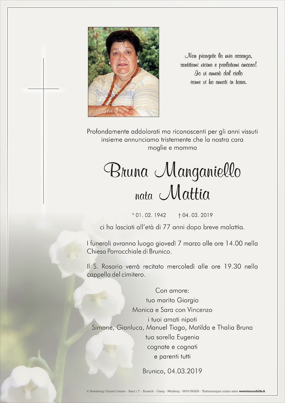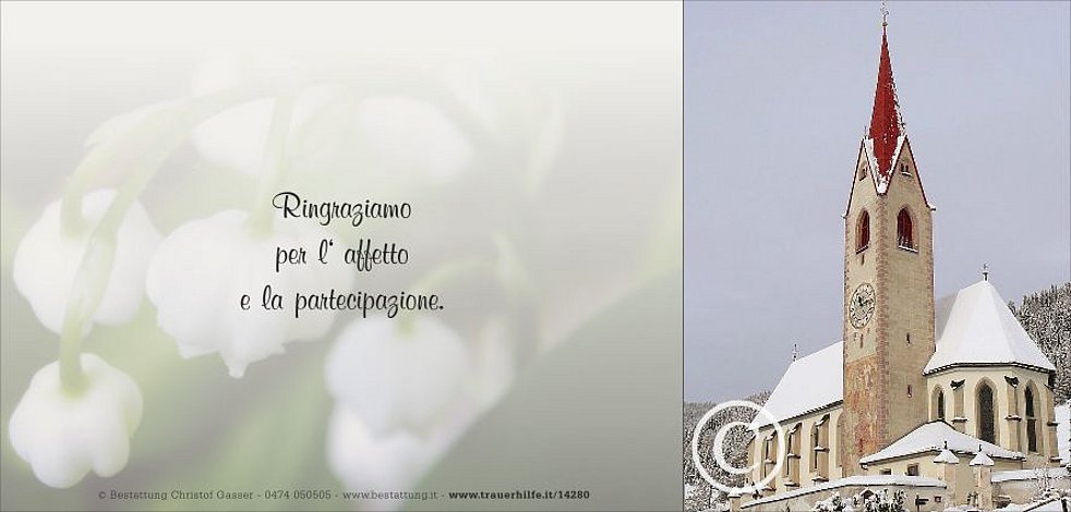 Begräbnisgottesdienst: 07.03. - 14:00 Uhr Pfarrkirche Bruneck