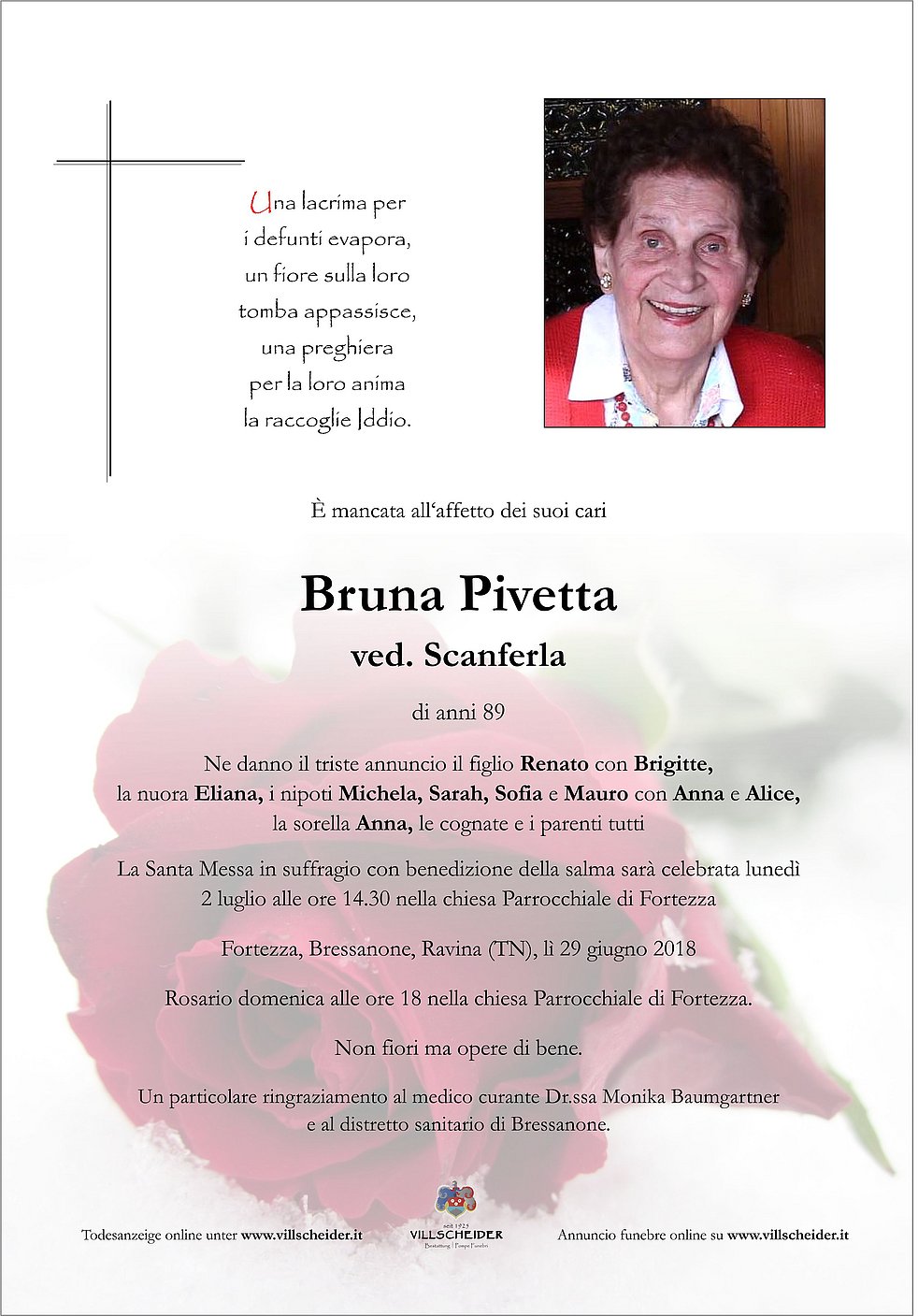 È mancata all‘affetto dei suoi cari