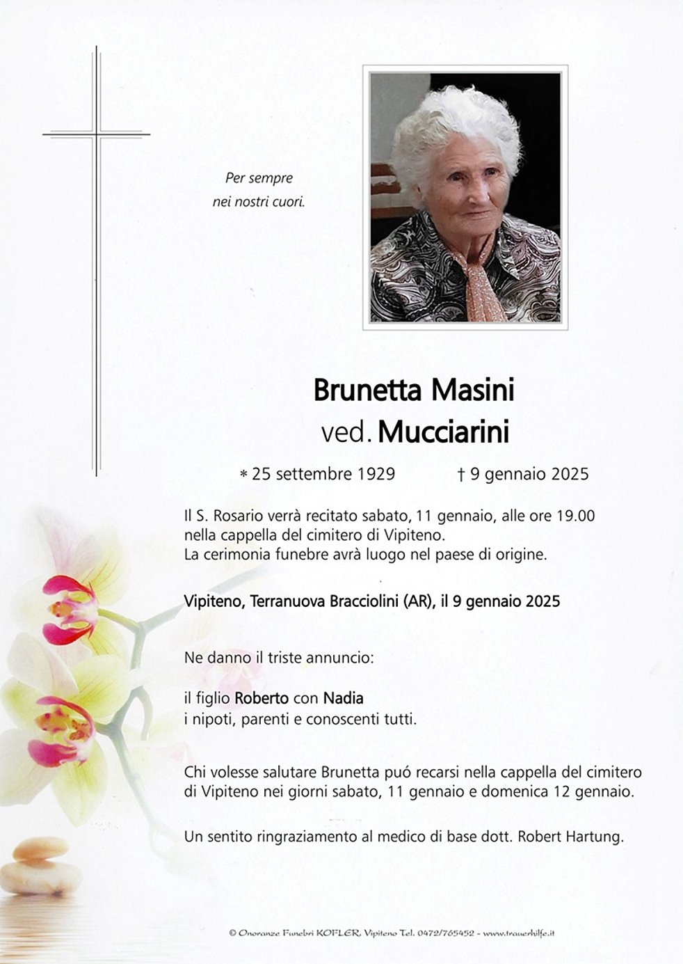 Chi volesse salutare Brunetta puó recarsi nella cappella del cimitero di Vipiteno nei giorni sabato, 11 gennaio e domenica 12 gennaio.