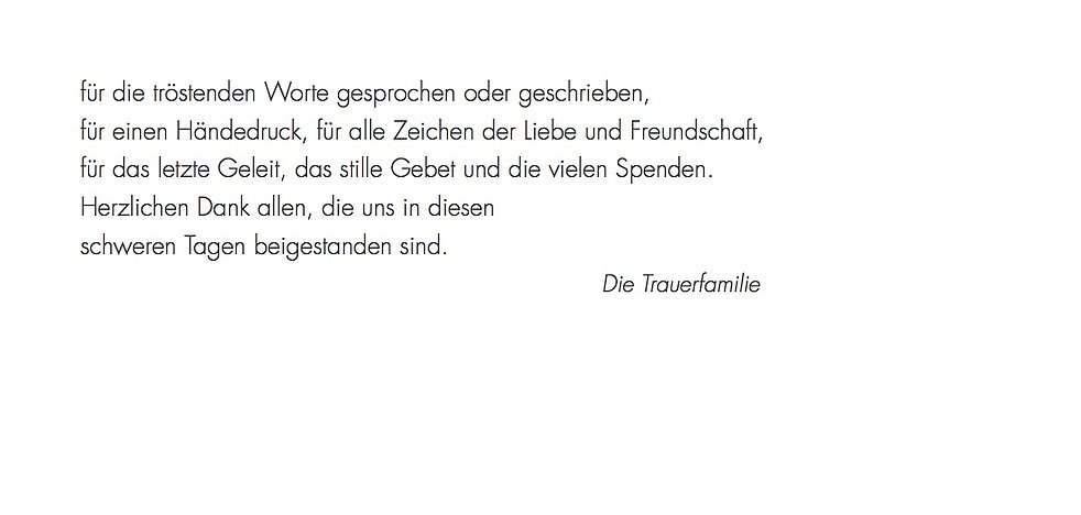 auch im Namen aller Verwandten und Bekannten