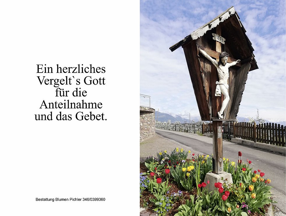 den 12. März um 14.30 Uhr in der Pfarrkirche von Tisens statt.