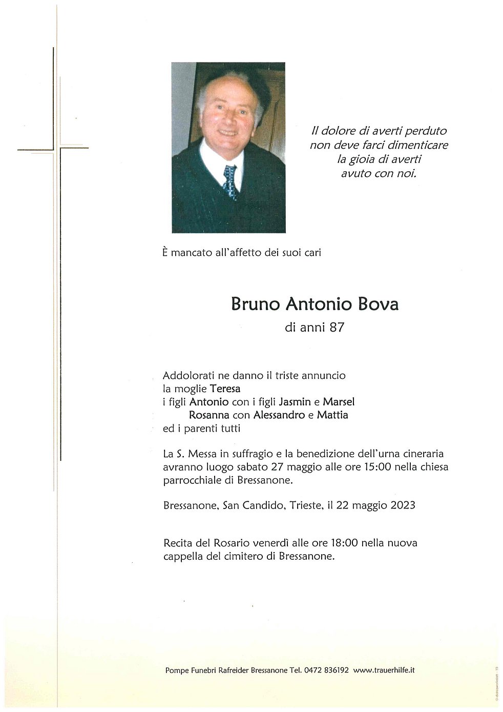 Trauerfeier: 27.05. - 15:00 Uhr Pfarrkirche und Friedhof Brixen