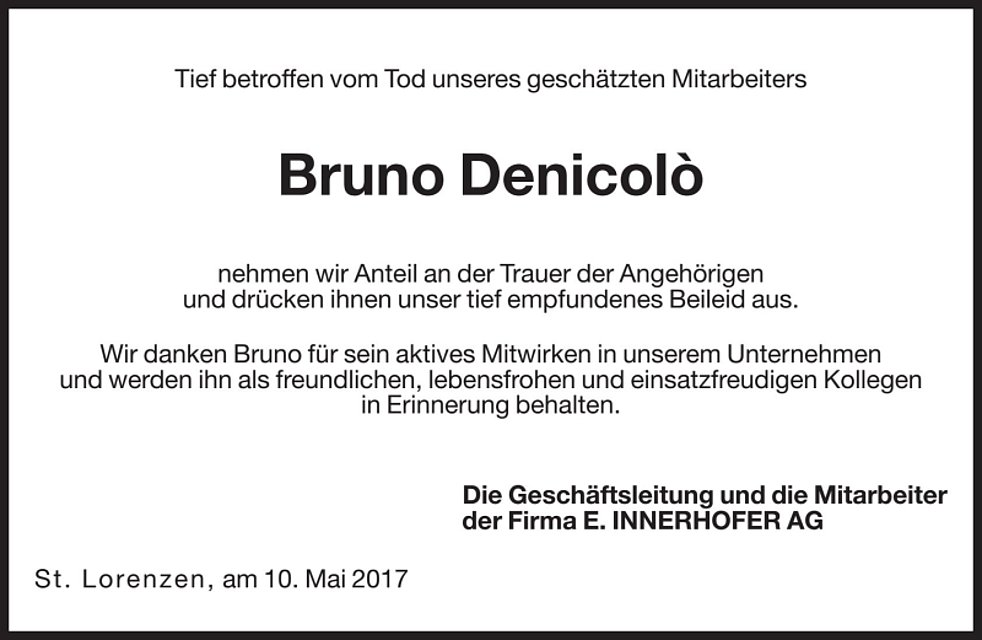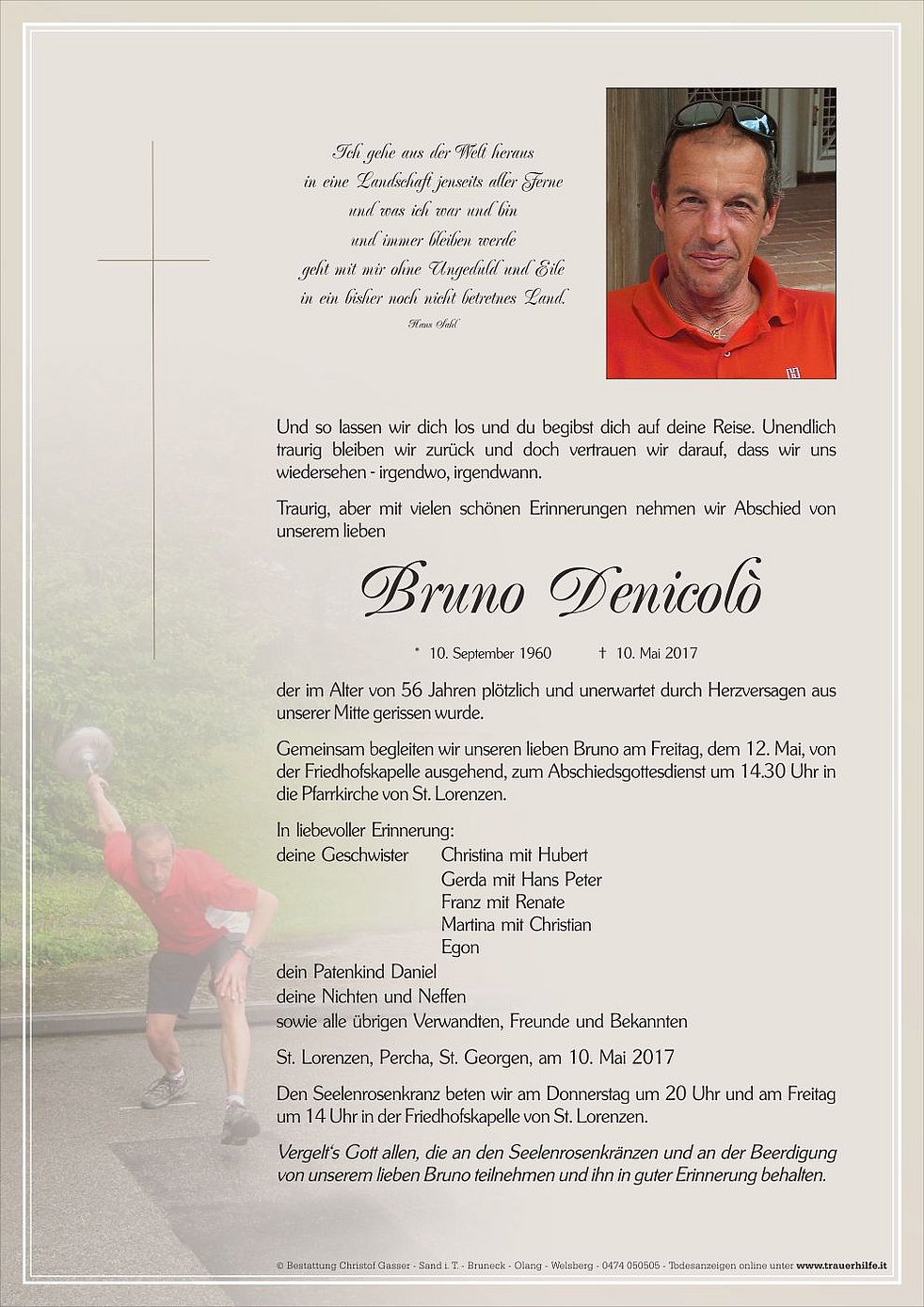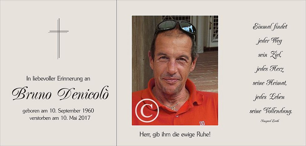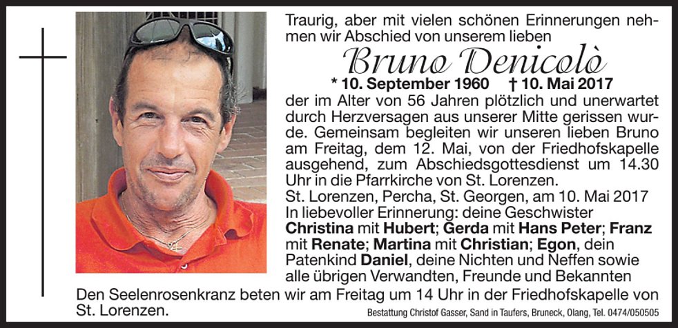 Gemeinsam begleiten wir unseren lieben Bruno am Freitag, dem 12. Mai, von der Friedhofskapelle ausgehend, zum Abschiedsgottesdienst um 14.30 Uhr in die Pfarrkirche von St. Lorenzen.