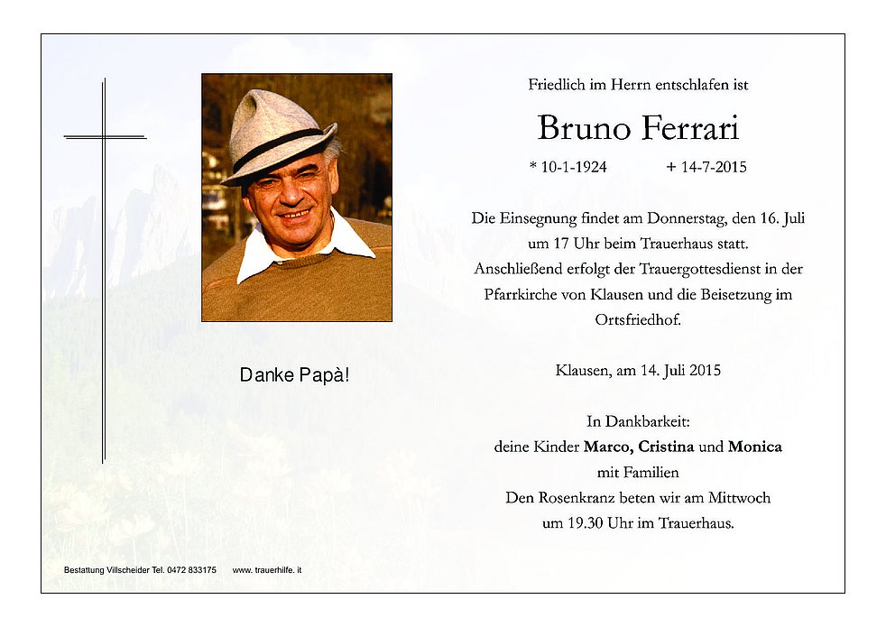 Anschließend erfolgt der Trauergottesdienst in der Pfarrkirche von Klausen und die Beisetzung im Ortsfriedhof.