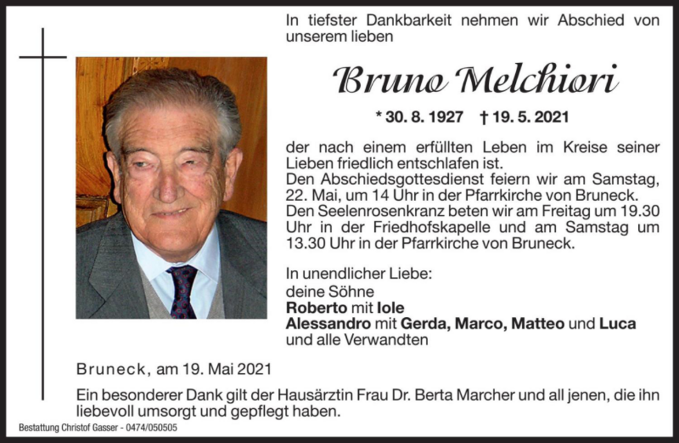 Ein besonderer Dank gilt der Hausärztin Frau Dr. Berta Marcher und all jenen, die ihn liebevoll umsorgt und gepflegt haben.