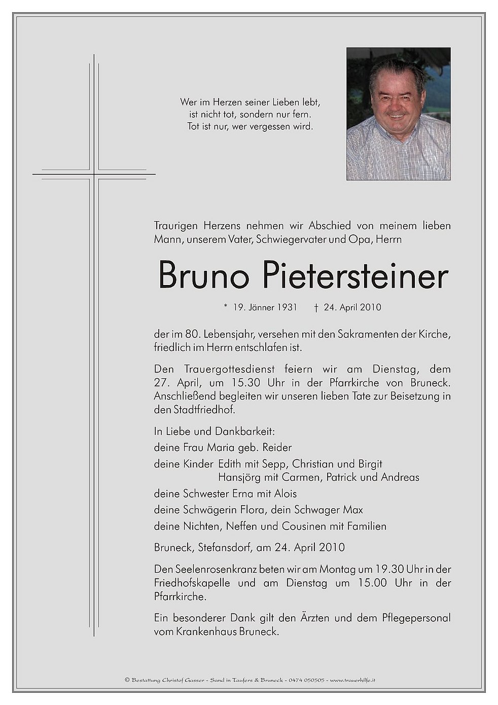27. April, um 15.30 Uhr in der Pfarrkirche von Bruneck. Anschließend begleiten wir unseren lieben Tate zur Beisetzung in den Stadtfriedhof.