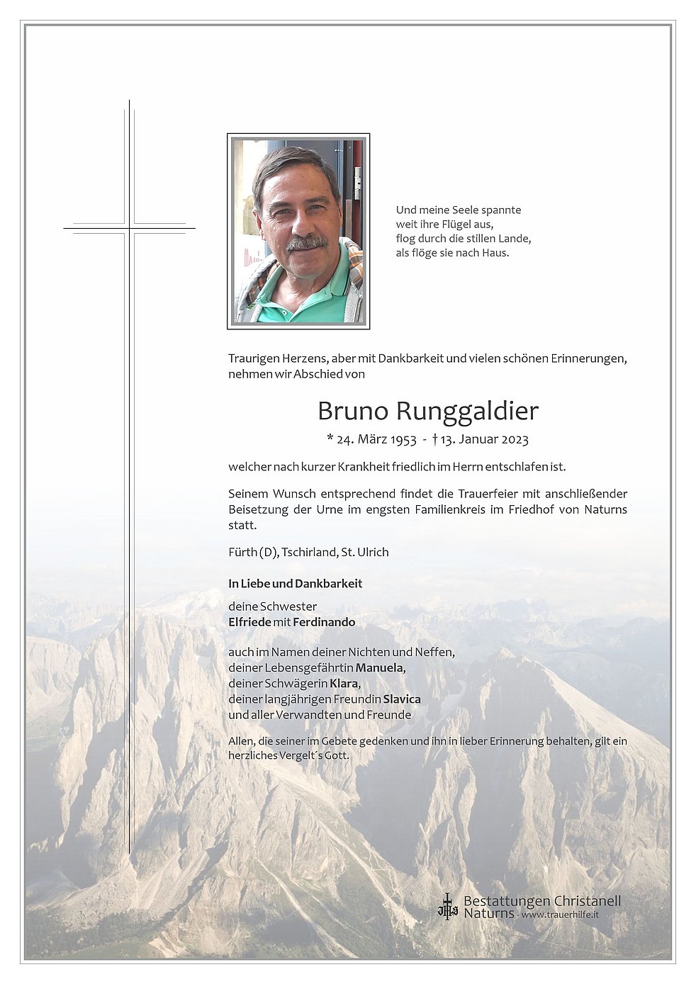 Seinem Wunsch entsprechend findet die Trauerfeier mit anschließender Beisetzung der Urne im engsten Familienkreis im Friedhof von Naturns statt.