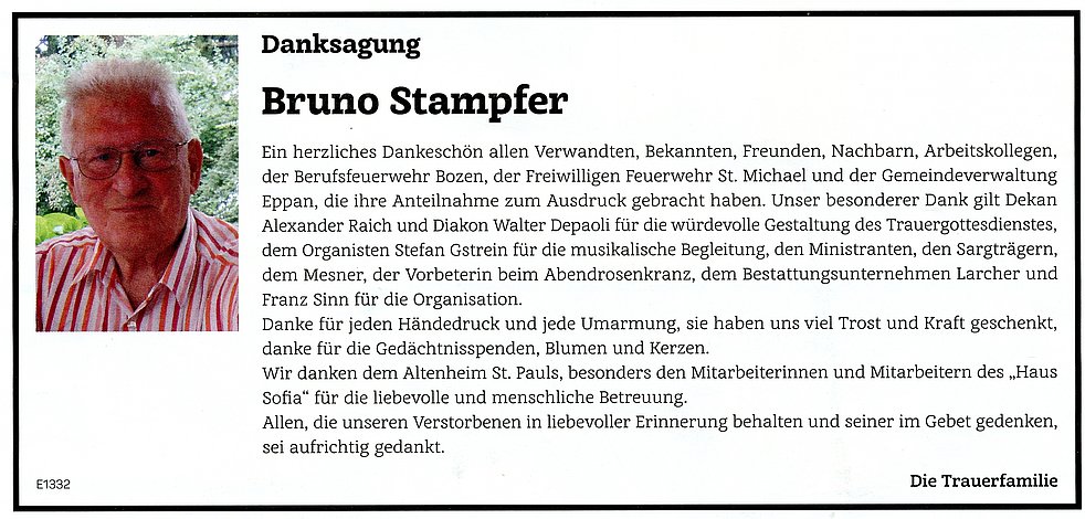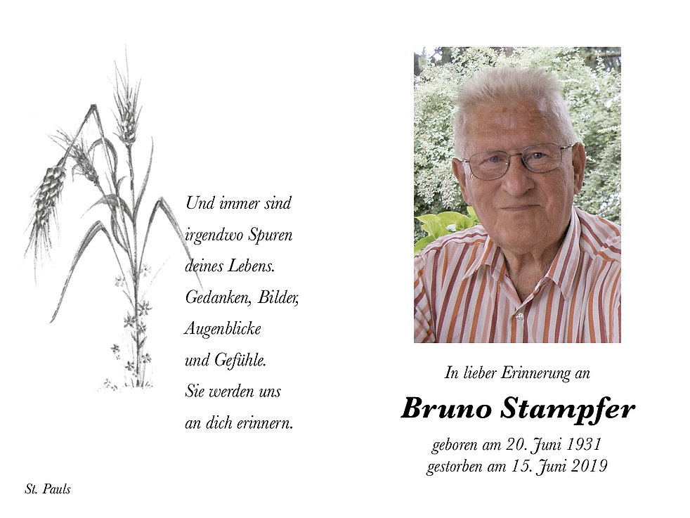 Den Trauergottesdienst feiern wir am Dienstag, dem 18. Juni um 17 Uhr in der Pfarrkirche von St. Pauls. Anschließend begleiten wir unseren lieben Verstorbenen auf den Ortsfriedhof. Den Abendrosenkranz beten wir am Montag um 19.30 Uhr in der Pfarrkirche von St. Pauls.