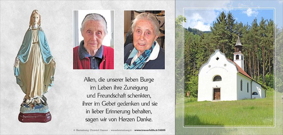 Ein herzliches Vergelt’s Gott gilt den Ärzten sowie dem Pflegepersonal der Abteilung Intensiv am Krankenhaus Bruneck und allen, die Burge hilfreich zur Seite gestanden sind.