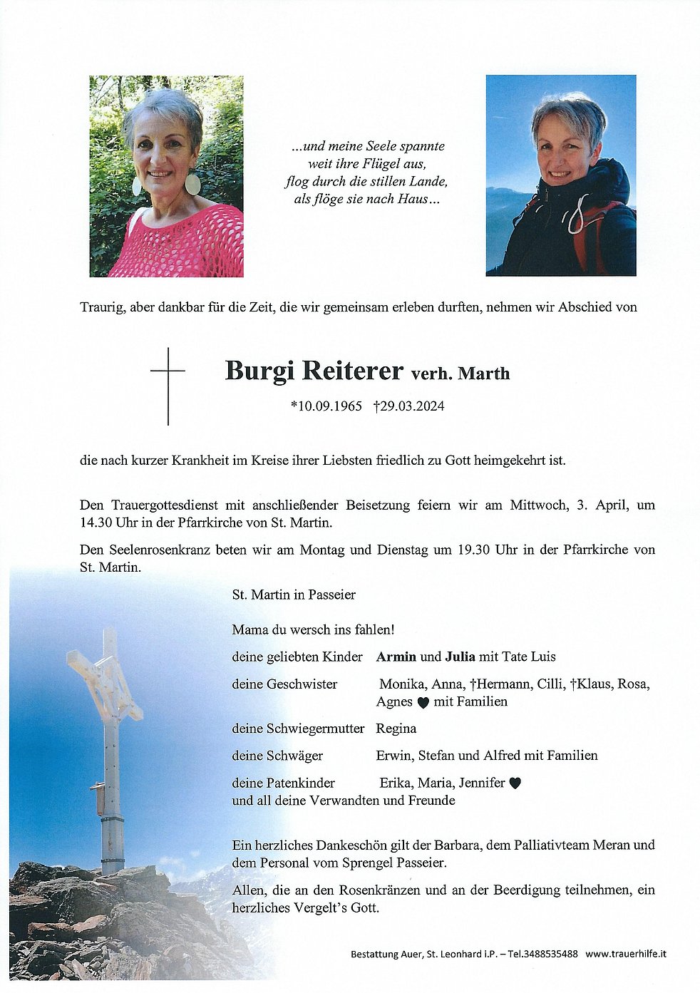 Ein herzliches Dankeschön gilt der Barbara, dem Palliativteam Meran und dem Personal vom Sprengel Passeier.