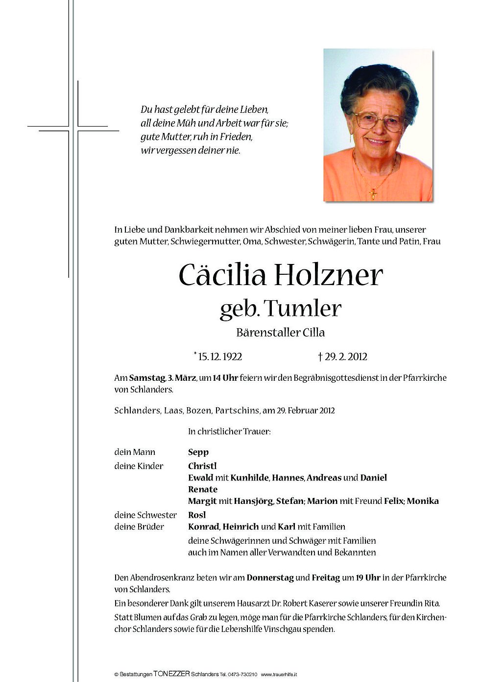 Statt Blumen auf das Grab zu legen, möge man für die Pfarrkirche Schlanders, für den Kirchenchor Schlanders sowie für die Lebenshilfe Vinschgau spenden.