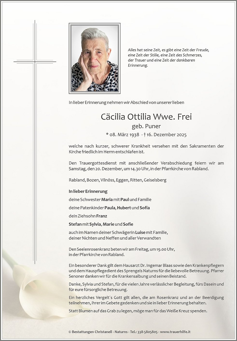 Ein besonderer Dank gilt dem Hausarzt Dr. Ingemar Blaas sowie den Krankenpflegern und dem Hauspflegedient des Sprengels Naturns für die liebevolle Betreuung. Pfarrer Senoner danken wir für die Krankensalbung und seinen Beistand.