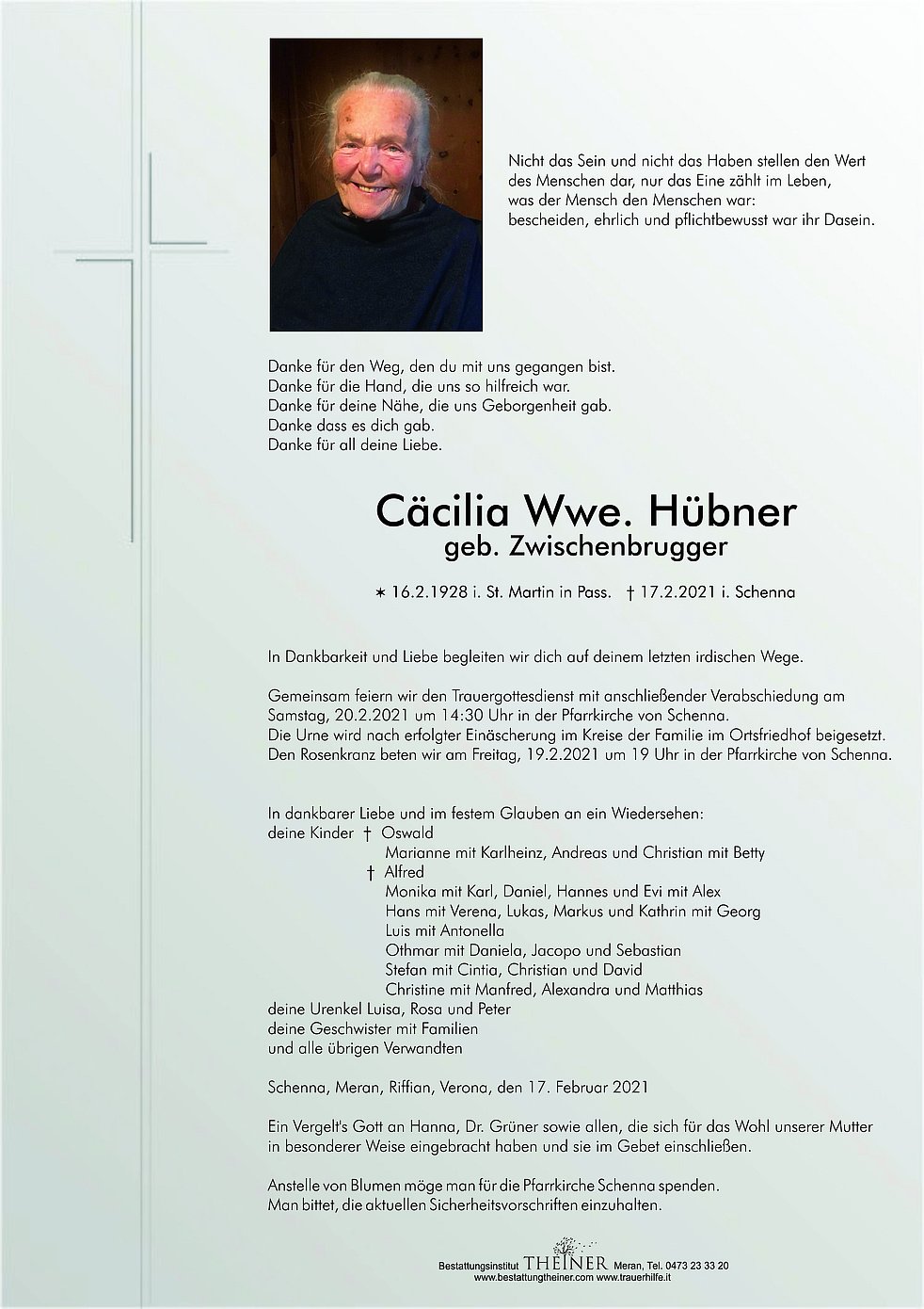 * 16.2.1928 i. St. Martin in Pass. † 17.2.2021 i. Schenna