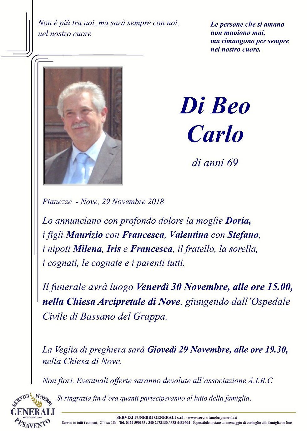 Begräbnisgottesdienst: 30.11. - 15:00 Uhr Chiesa Arcipretale di Nove - Bassano del Grappa