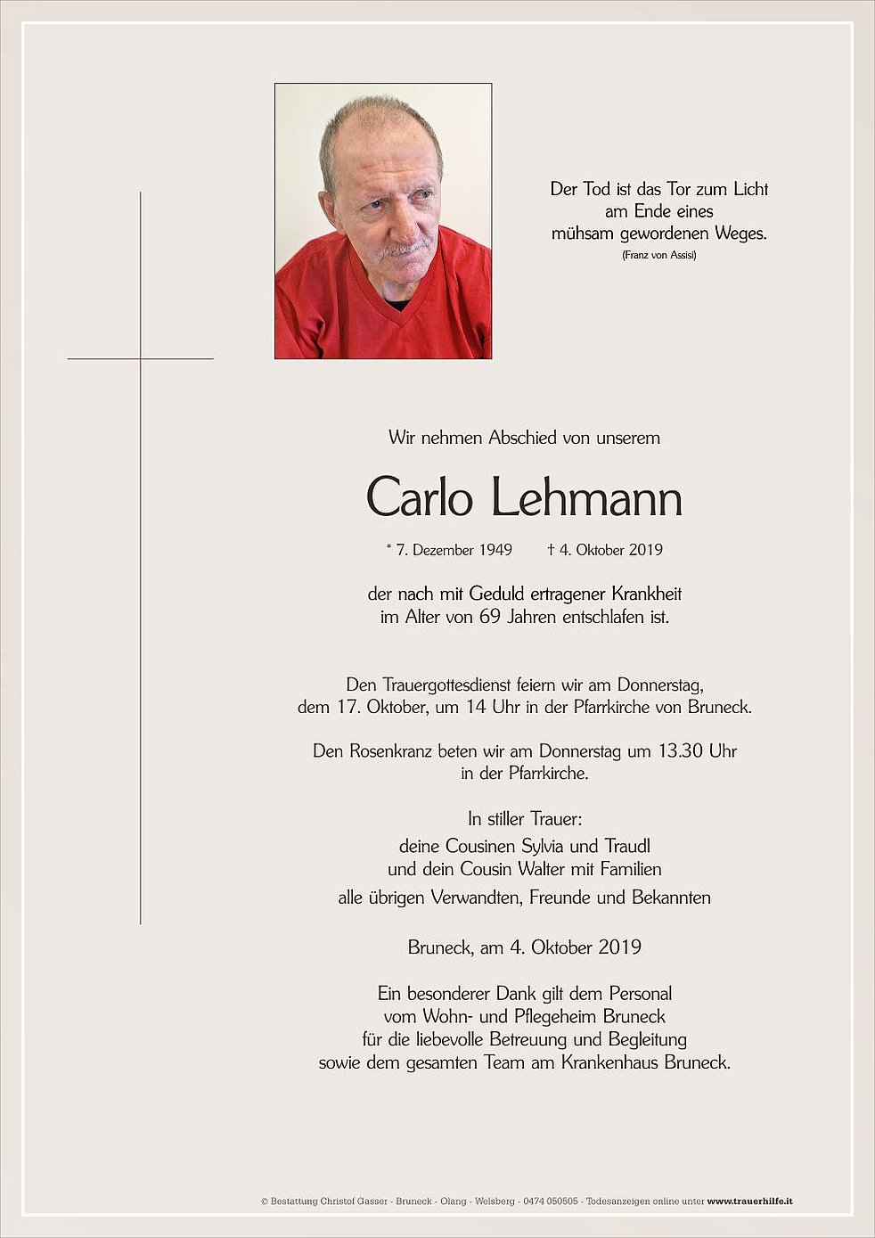 der nach mit Geduld ertragener Krankheit im Alter von 69 Jahren entschlafen ist.
