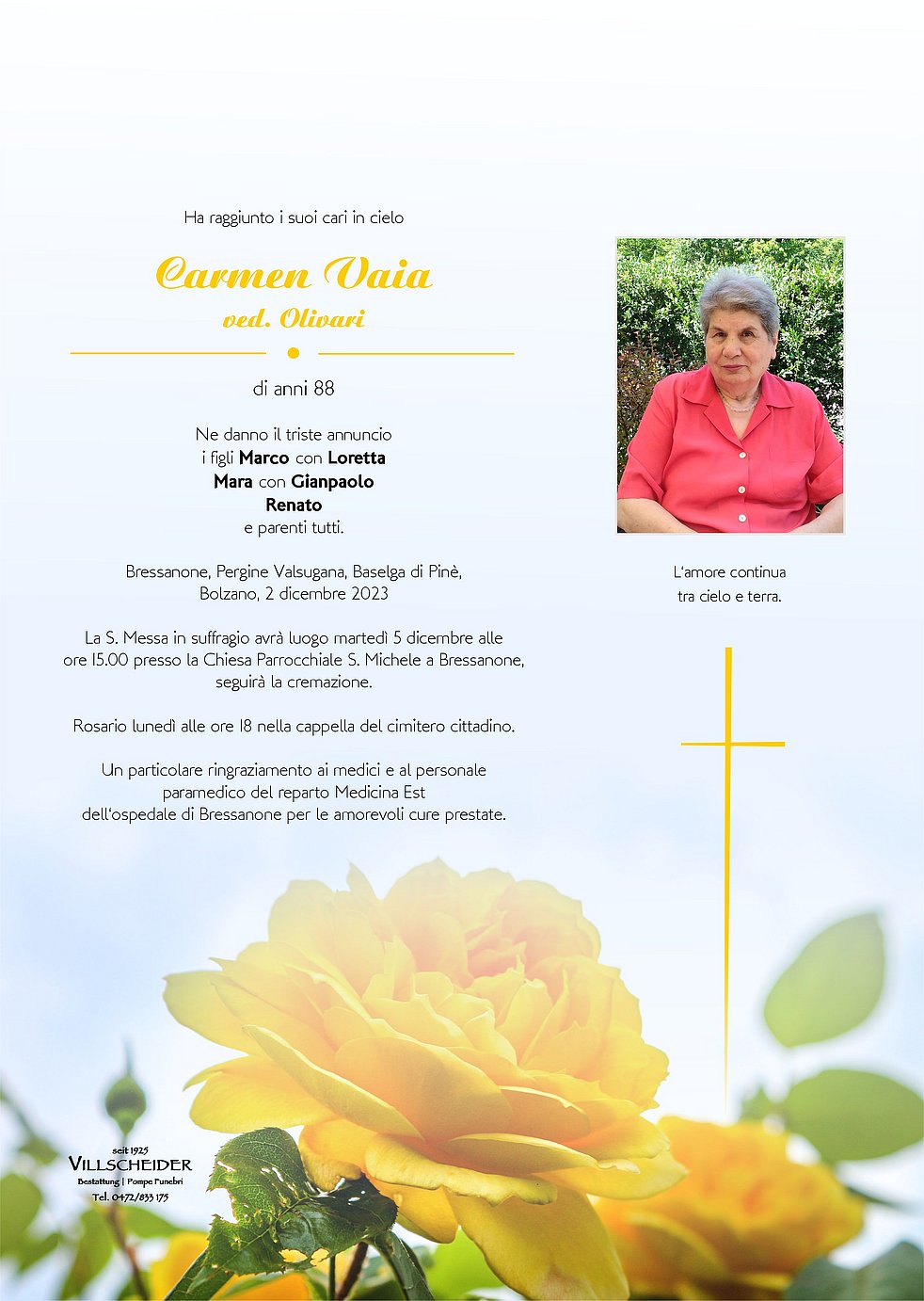 Begräbnisgottesdienst: 05.12. - 15:00 Uhr Brixen; Bressanone
