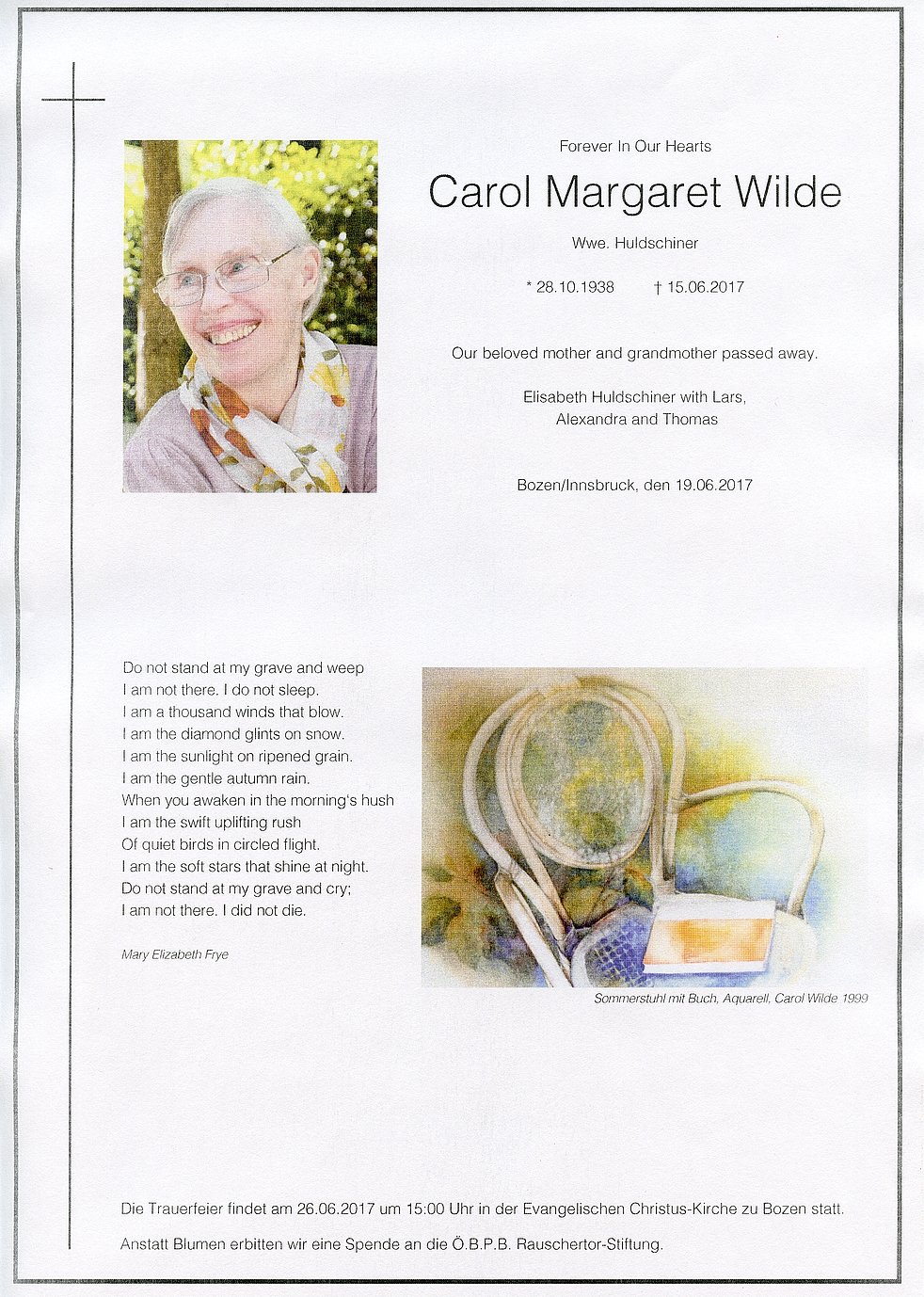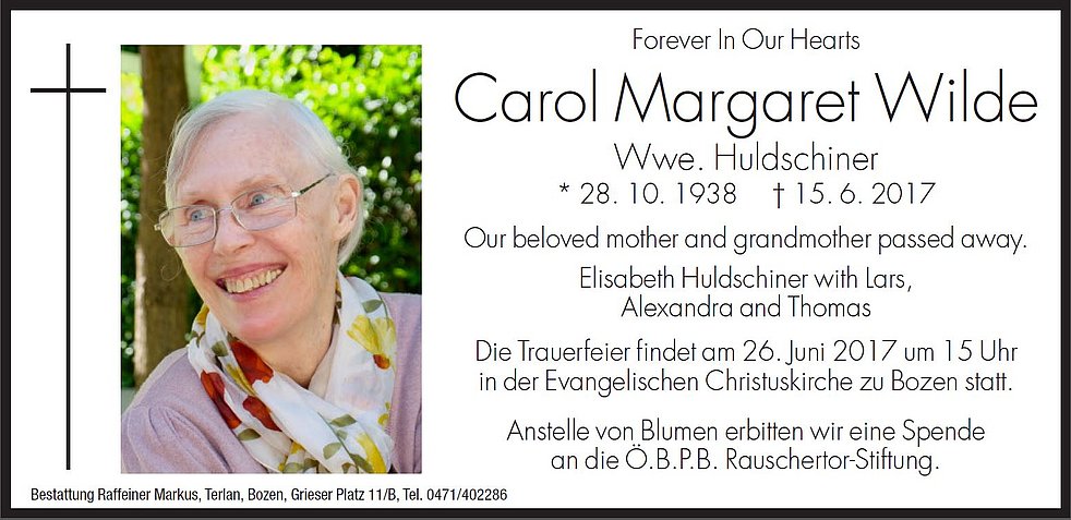 Die Trauerfeier findet am 26.6.2017 um 15 Uhr