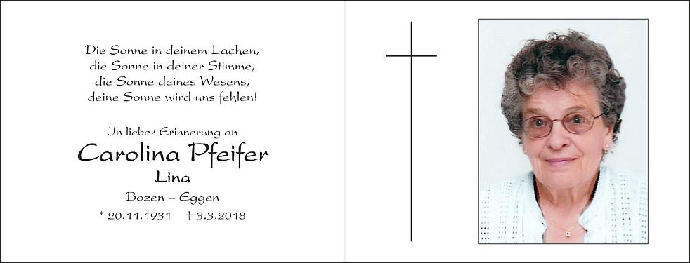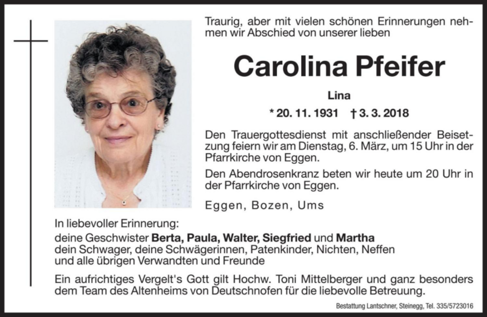dem Team des Altenheims von Deutschnofen für die liebevolle Betreuung.