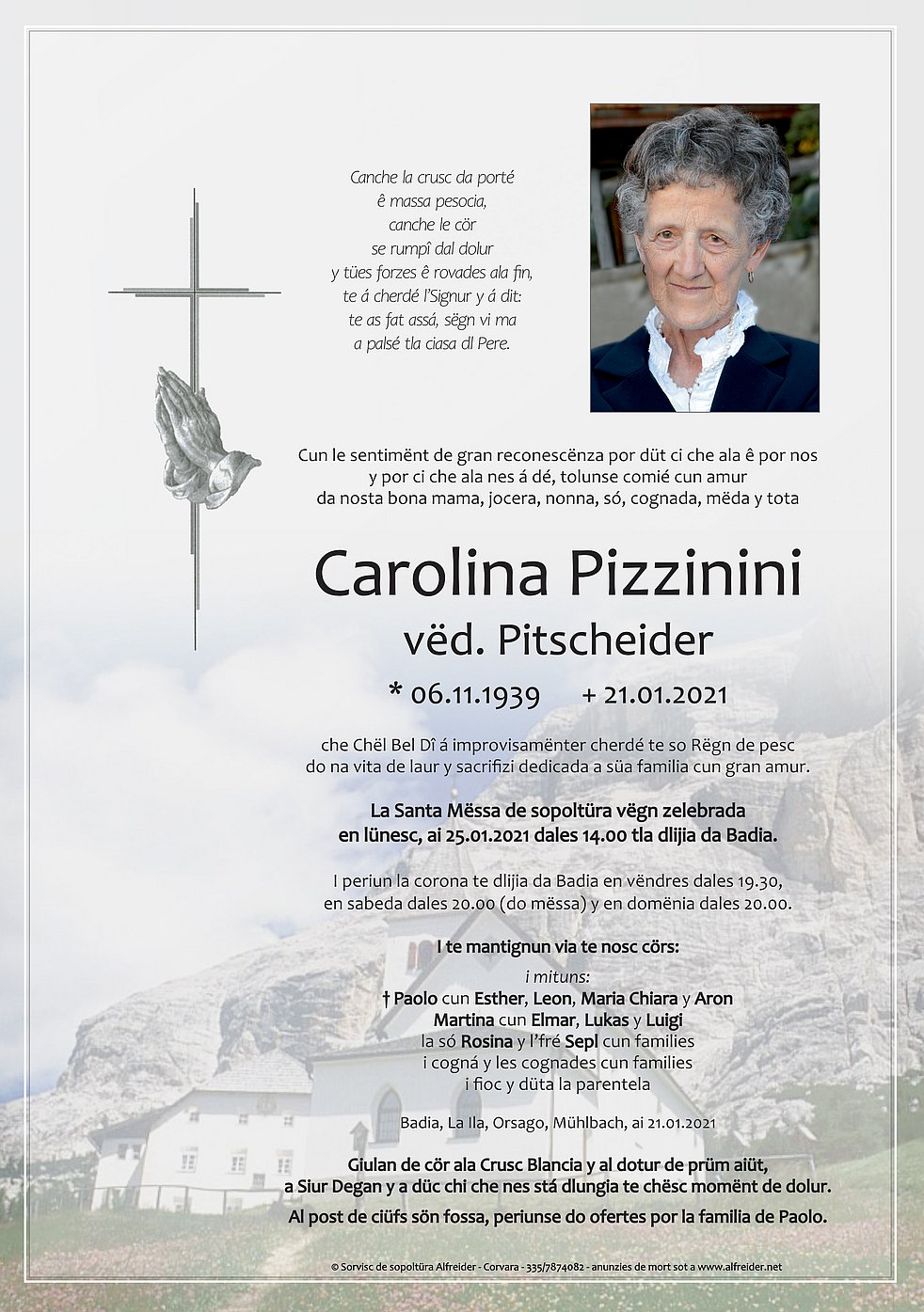Den Trauergottesdienst feiern wir am Montag, dem 25. Jänner,