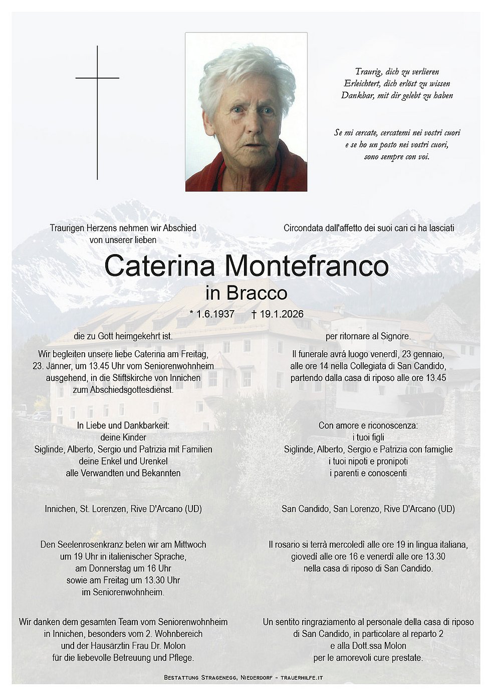 Trauerfeier: 23.01. - 14:00 Uhr Innichen