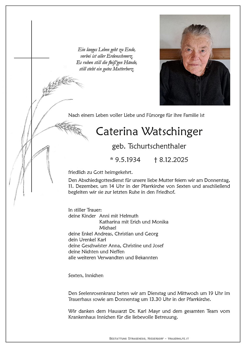 Es ist schwer, wenn sich Mutter's Augen schließen, die Hände ruh'n, die einst so viel geschafft.