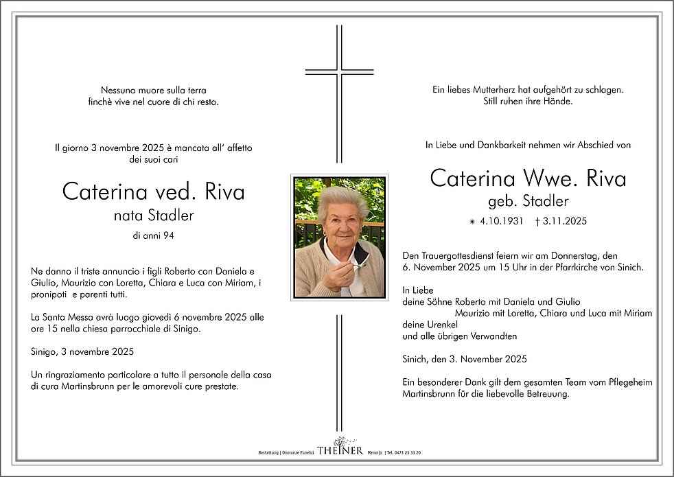 Den Trauergottesdienst feiern wir am Donnerstag, den 6. November 2025 um 15 Uhr in der Pfarrkirche von Sinich.