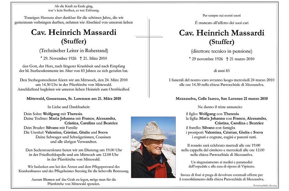 Krankenhauses und des Pflegeheimes Sterzing für die liebevolle Betreuung.