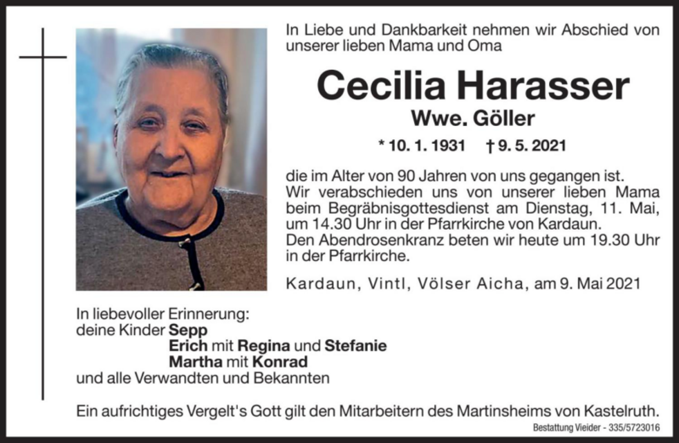Wir verabschieden uns von unserer lieben Mama beim Begräbnisgottesdienst am Dienstag, 11. Mai um 14.30 Uhr in der Pfarrkirche von Kardaun.