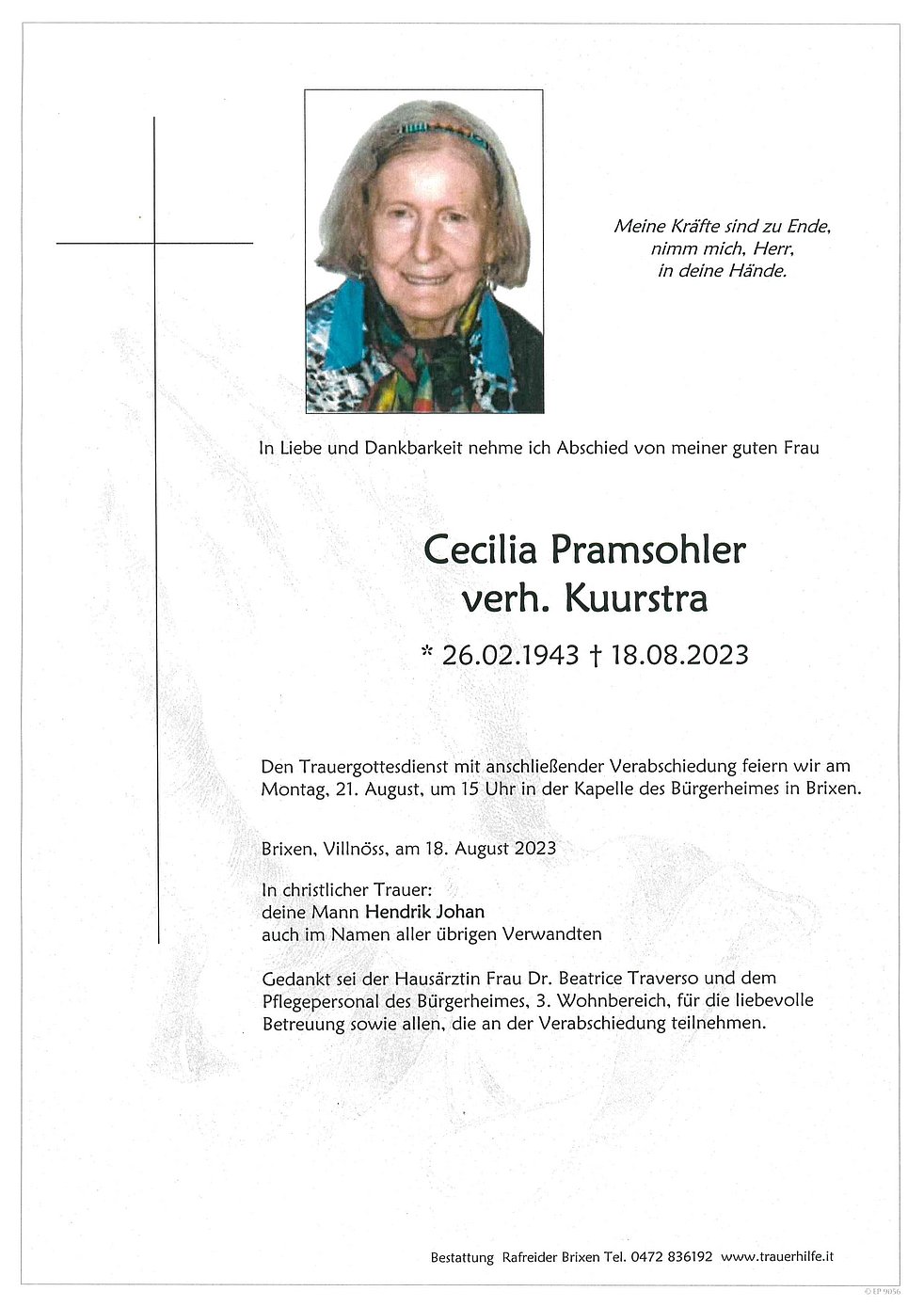 Trauerfeier: 21.08. - 15:00 Uhr Kapelle des Bürgerheimes Brixen