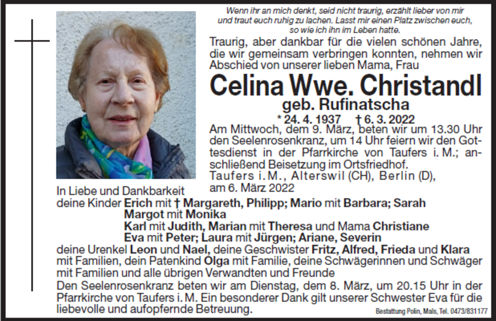Taufers i. M., Alterswil (CH), Berlin (D), am 06. März 2022