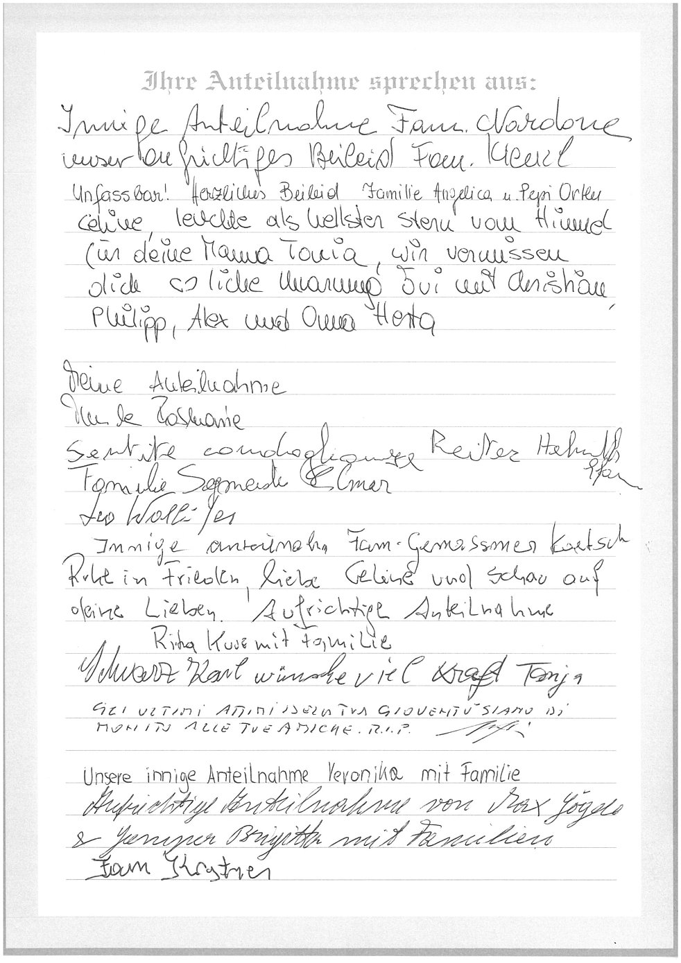 Man bittet von Beileidsbekundungen abstand zu nehmen.