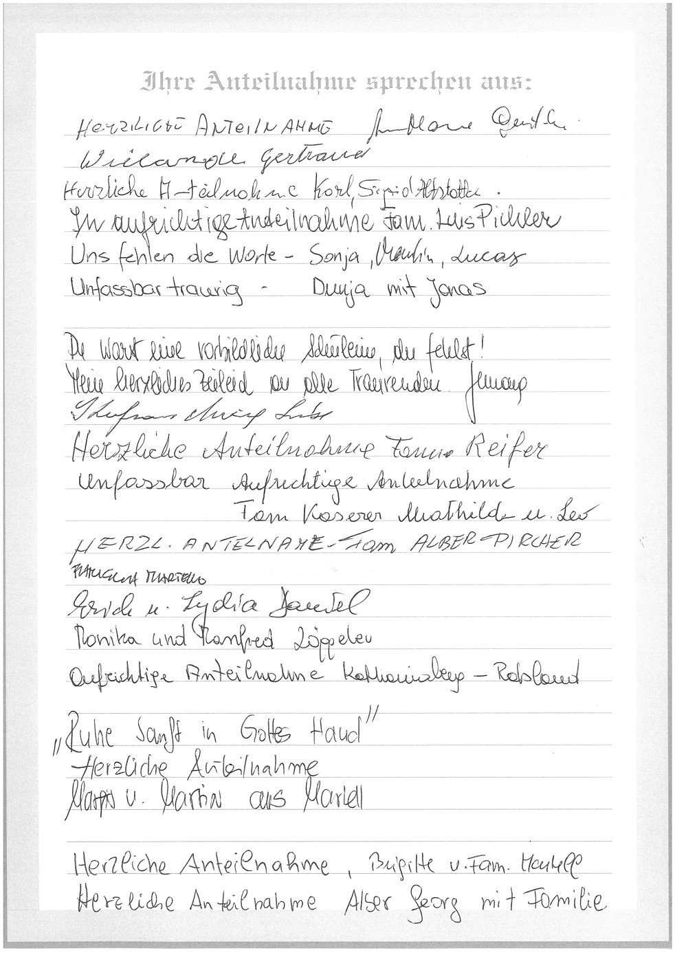 auch im Namen aller Freunde, Verwandten und Bekannten
