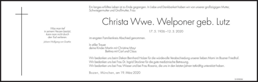 Zum Verfassen von Kondolenzen müssen Sie sich in Ihr TrauerHilfe.it Profil einloggen.