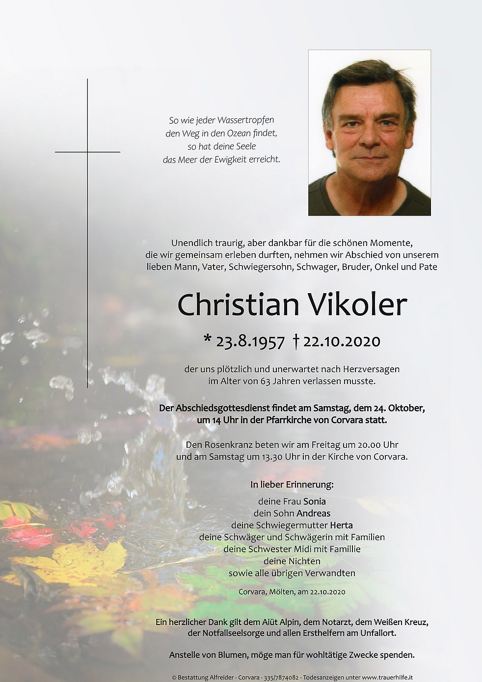 Der Abschiedsgottesdienst findet am Samstag, dem 24. Oktober, um 14 Uhr in der Pfarrkirche von Corvara statt.