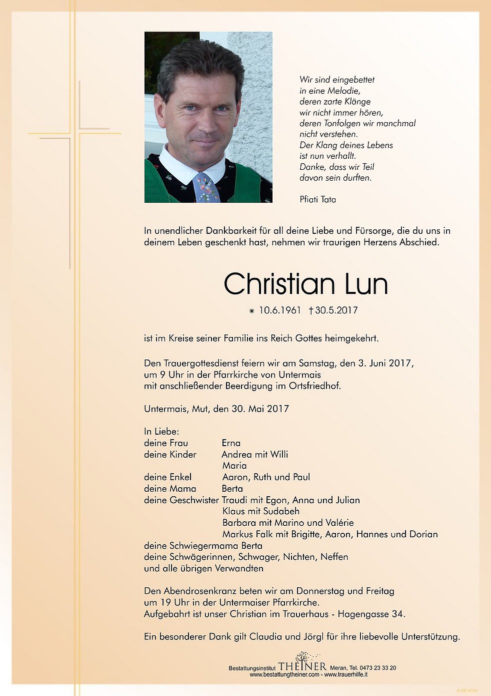 Den Trauergottesdienst feiern wir am Samstag, den 3. Juni 2017,