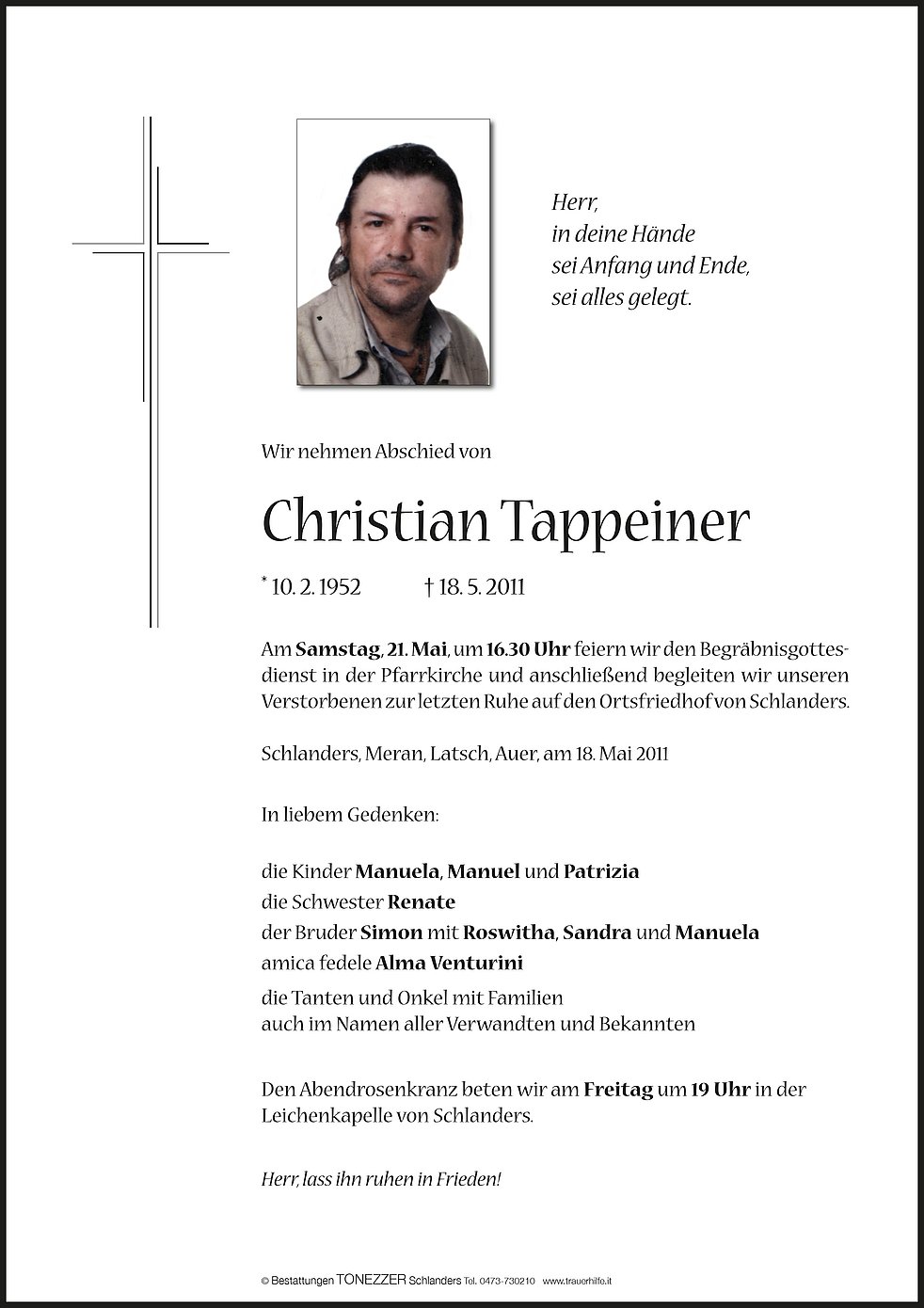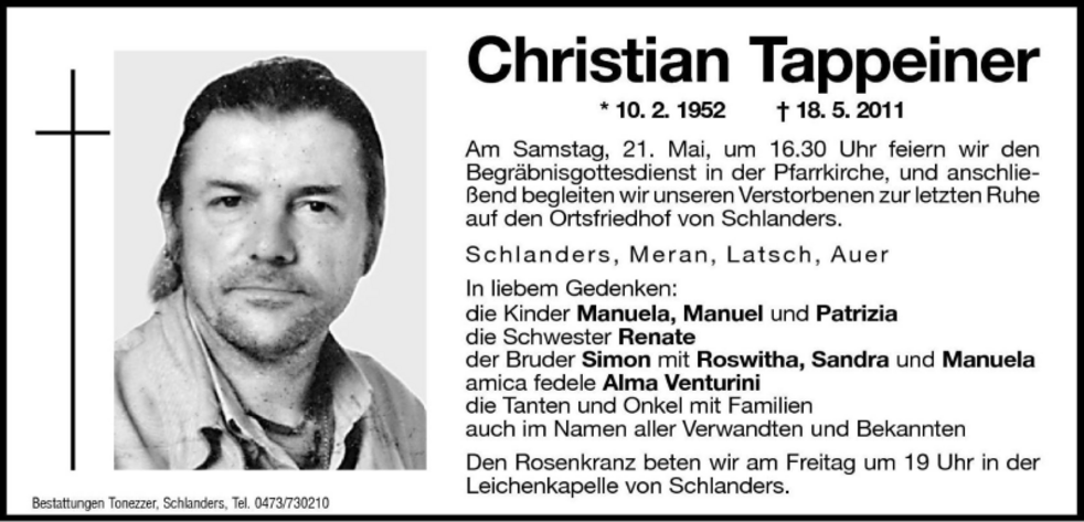 Dir, liebe Renate größte Hochachtung und Respekt, dass du Deinen lieben Bruder Christian die letzten Jahre mit so viel Liebe betreut und begleitet hast.