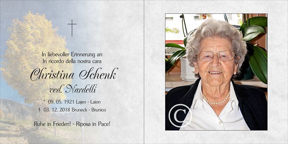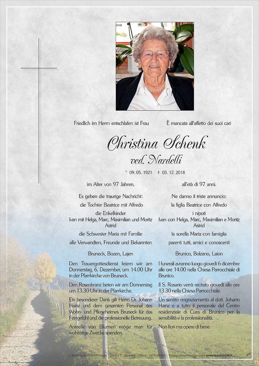 Ein besonderer Dank gilt Herrn Dr. Johann Hainz und dem gesamten Personal des Wohn- und Pflegeheimes Bruneck für das Feingefühl und die professionelle Betreuung.