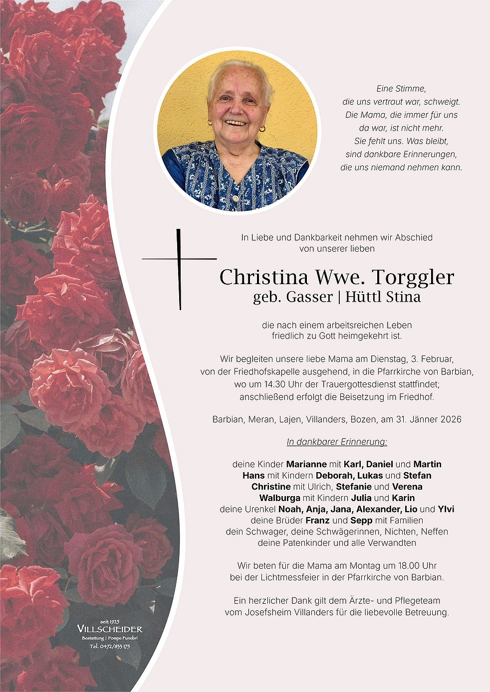 Begräbnisgottesdienst: 03.02. - 14:30 Uhr Barbian