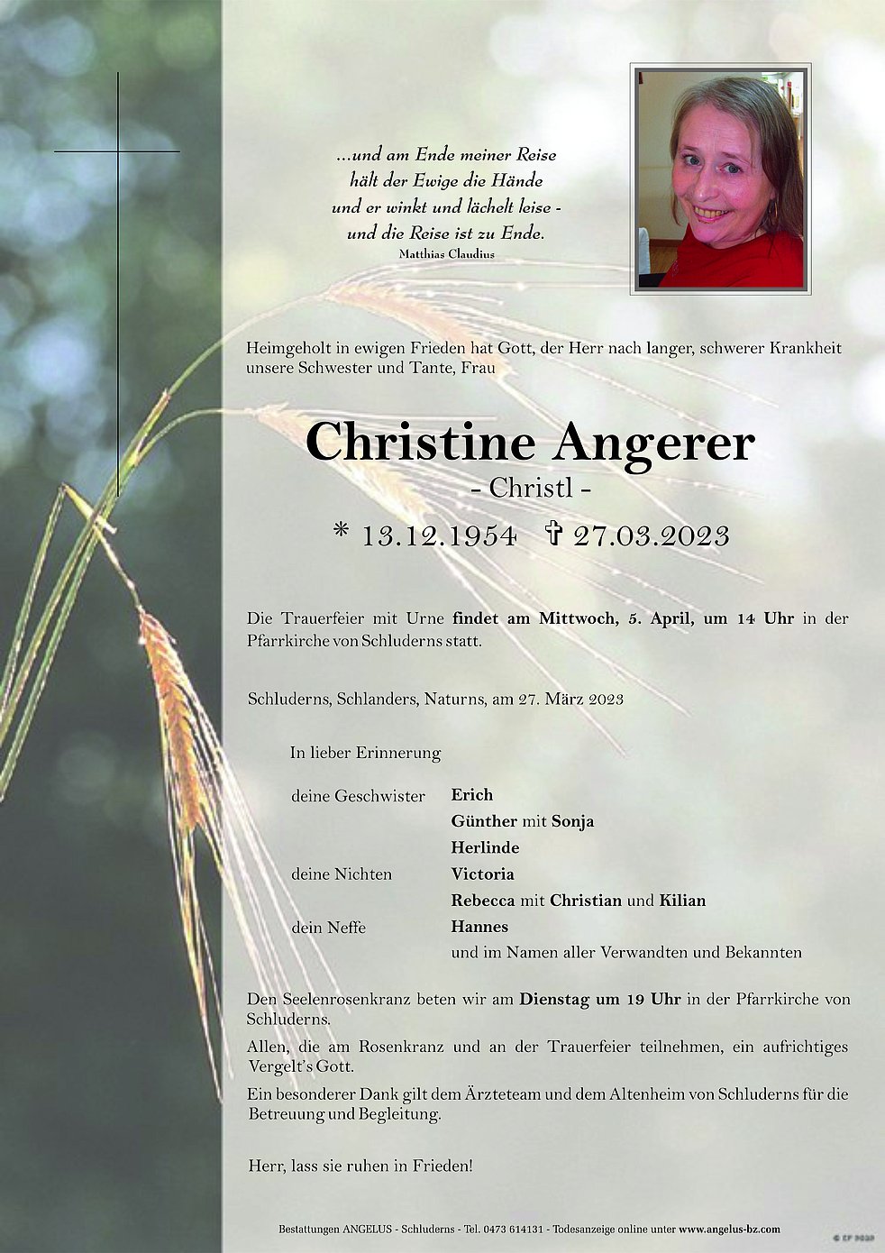 Zum Heimgang deiner Schwester Christine möchte ich dir mein aufrichtiges Beileid ausdrücken.