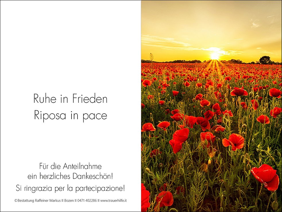 Ein besonderer Dank gilt dem gesamten Personal des Vinzenzhauses und der Abteilung Geriatrie des Krankenhauses Bozen für die Betreuung sowie Erny Pomella für ihre liebevolle Freundschaft.