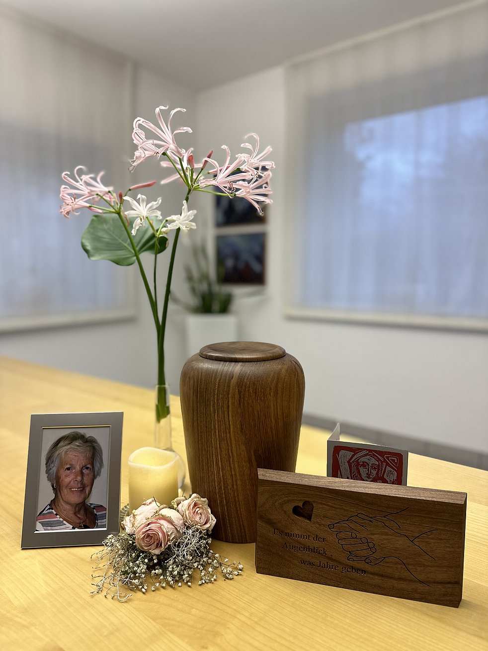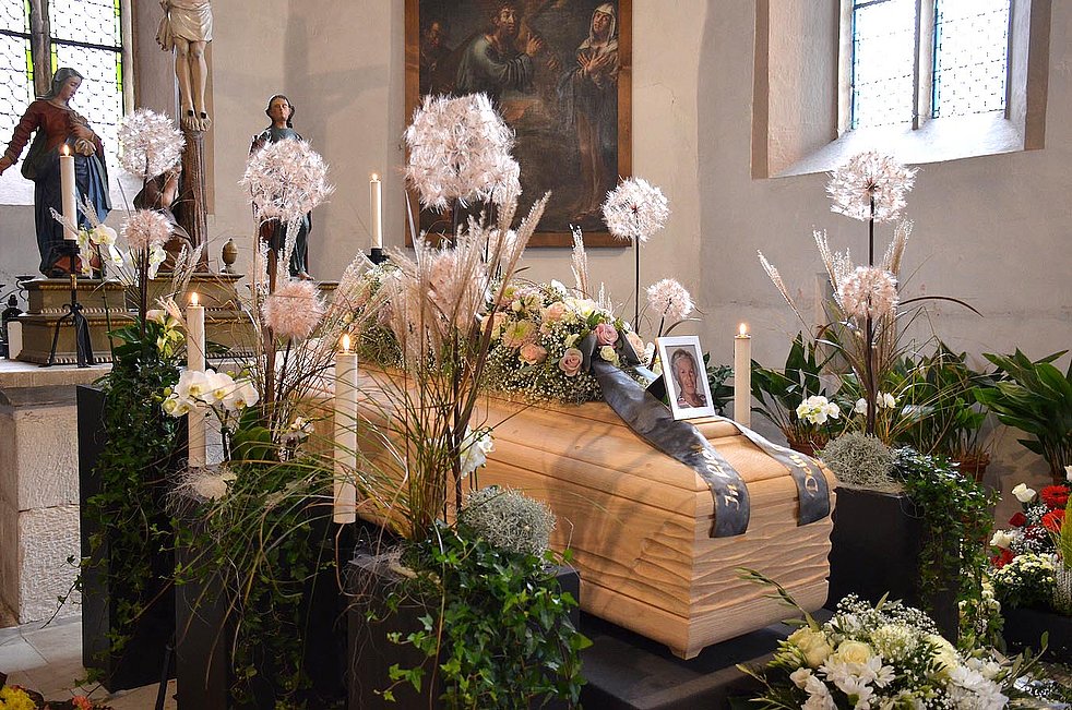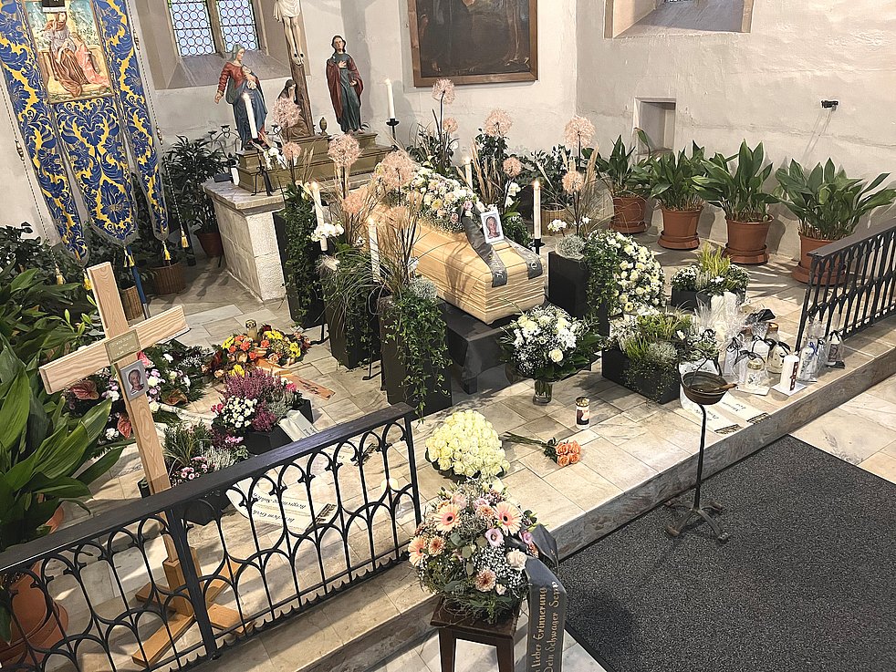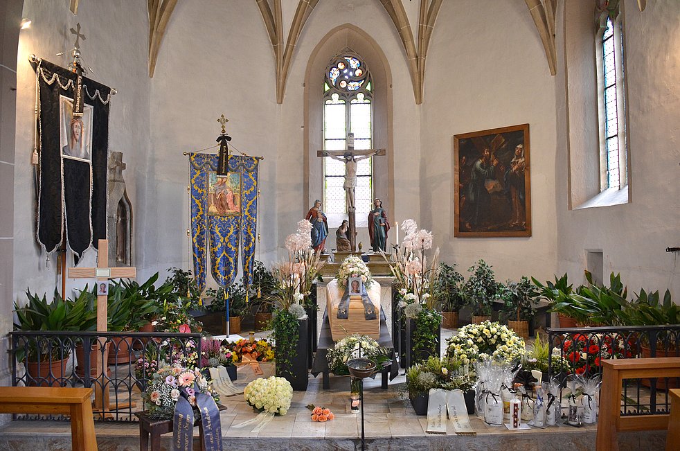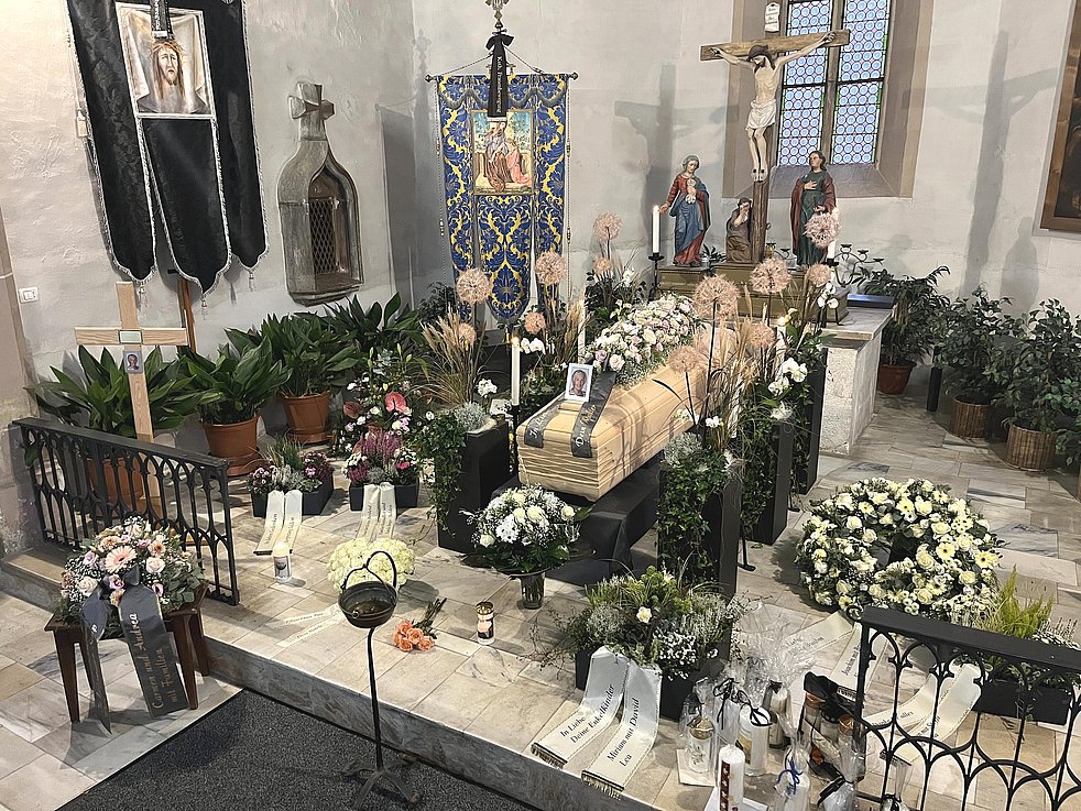 Ich bedaure von Herzen den Verlust Eurer wunderbaren besonderen und liebevollen Gattin und Mamma.Ich kannte Sie nur von Ihren Spaziergängen mit Ihren geliebten Walter,bei denen Sie durch Ihre herzliche und leuchtend Art unsere Welt ein wenig erhellte.Vor kurzen beim bringen der hl.Komunion im Krankenhaus wurde ich reich beschenkt.Es war eine tiefe und bleibende Begegnung in Freude Dankbarkeit und Liebe,man spürte deutlich diese starke Liebe im Zimmer von Ihr und Ihren Walter an der Seite.