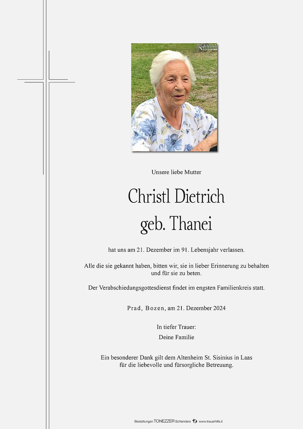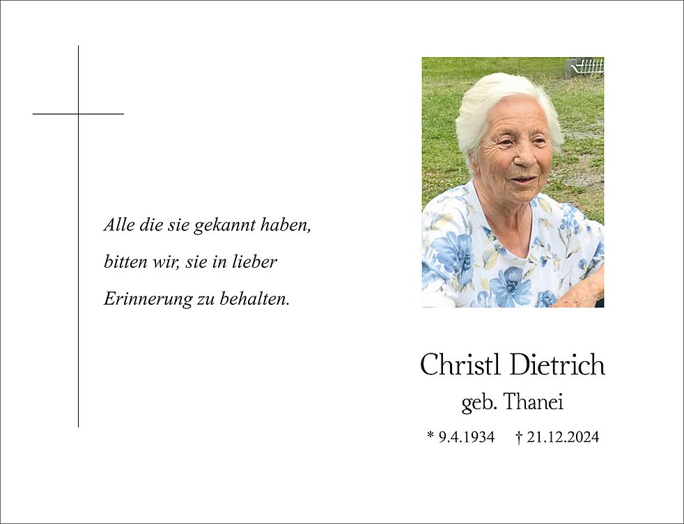 ich denke gerne an die Besuche bei Tante Christl zurück und spreche euch allen auf diesem Wege mein tiefes Mitgefühl aus. Tante Christl war ein freundlicher und herzlicher Mensch, ich werde sie in guter Erinnerung behalten.